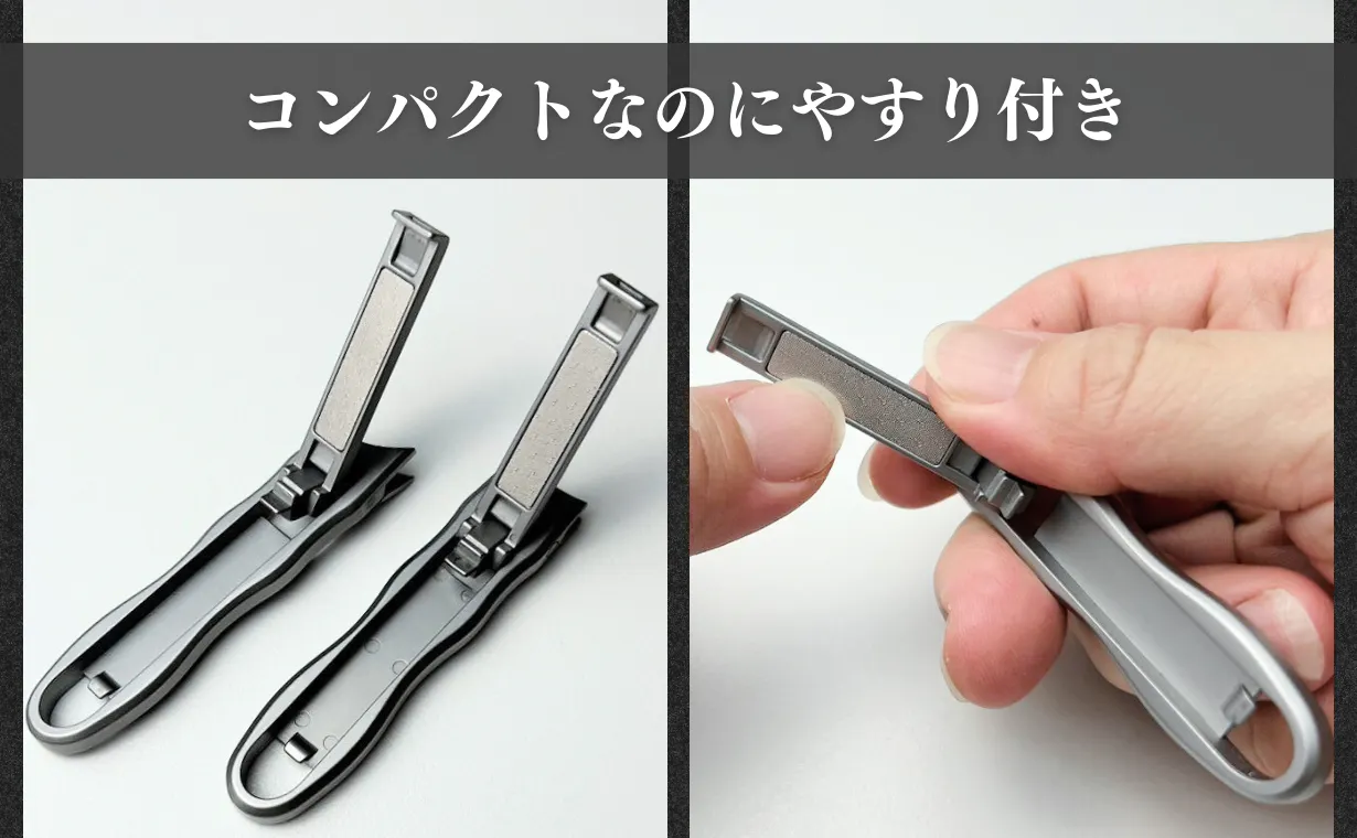 どんな爪でも簡単に切れるため、自宅や外出先でのケアもスムーズです。