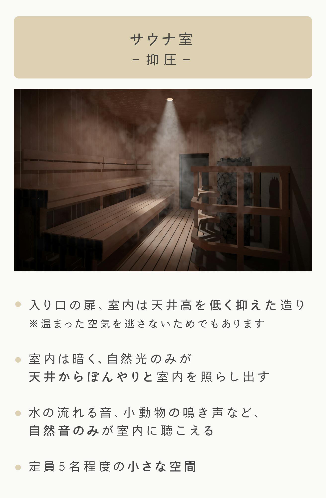 そこで、圧倒的に「ほどける」ために、サウナの設計コンセプトを以下のように定義しました。