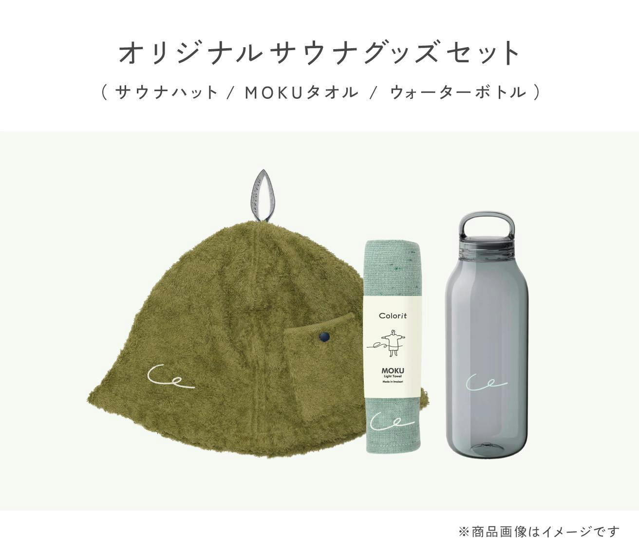 カラリトのロゴがあしらわれたオリジナルサウナグッズをセットで。近所の銭湯やサウナ、週末のアウトドアにも。(カラーは変更になる可能性があります)