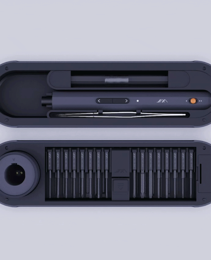 ビットやピンセットだけでなく、充電台など付属品を全部まとめてケースに収納できます。
