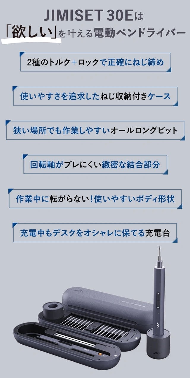 ショートビットでは届かない、作業しにくい場所があるから、JIMISET 30Eは【オールロングビット】。
