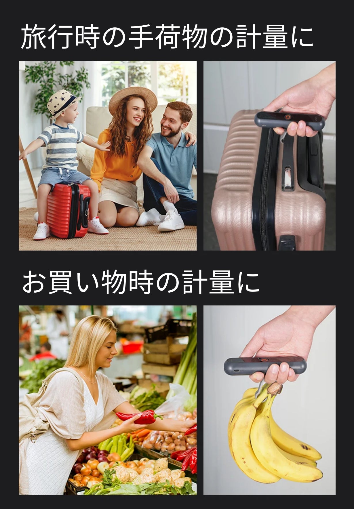 外出中でもさっと取り出してキャリーケースなどをの重さを測れるので、旅行時…特に飛行機に乗る際などに空港で計測できて便利です。