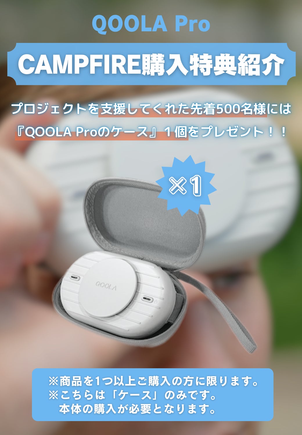 大好評をいただき大成功したプロジェクトを記念して、CAMPFIREだけの購入者限定提供キャンペーンを実施します!ご支援者様の中から抽選で当たった方に、なんとQOOLA Proのケースを提供!!