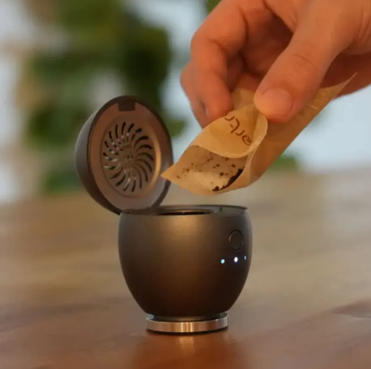 【Orbby】は、充電式でどこへでも持ち運べる「電子香炉」です。