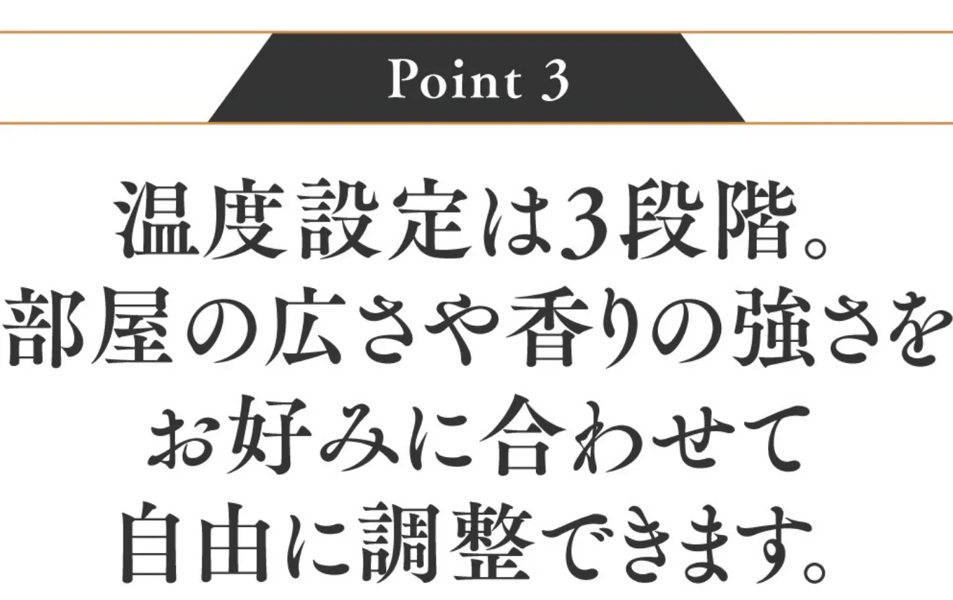 温度やお香の量を調整できるので、香りの広げ方は自由自在。