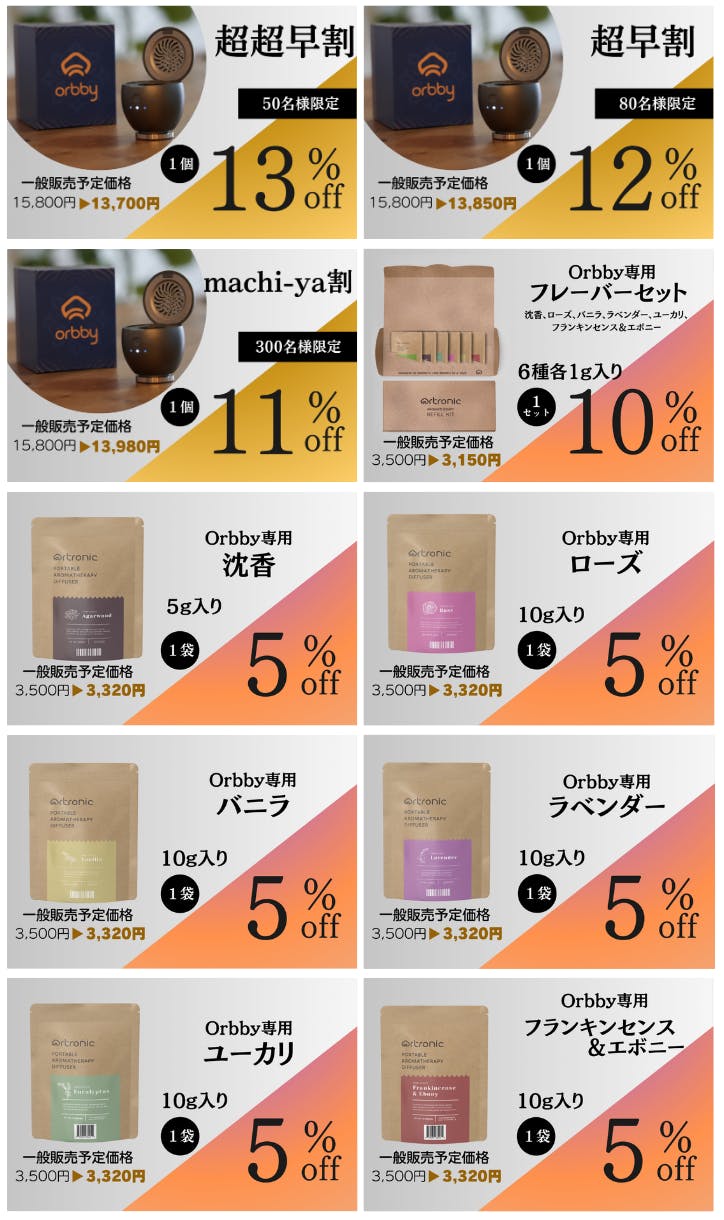 swordsman884 様 お問合せ有難うございます。 プロジェクト終了後のフレーバー販売は、どのフレーバーにどのくらいのニーズがあるのか、などをプロジェクトを通じて皆さまからのご意見を参考に、別サイトにて販売継続を予定しております。 その際は、皆さまに販売ページをご連絡いたします。 ぜひともOrbby専用に開発されたフレーバーをお試しいただき、お気に入りの香りを見つけていただけると嬉しく思います。 今後ともご支援のほど、よろしくお願いいたします。