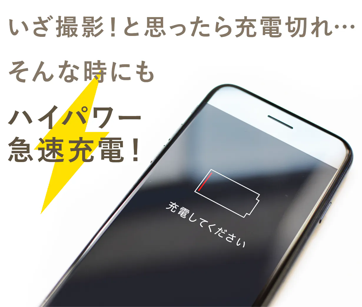 撮影中なのに充電が切れそう…!そんな時にも撮影を止めずに急速充電可能です。