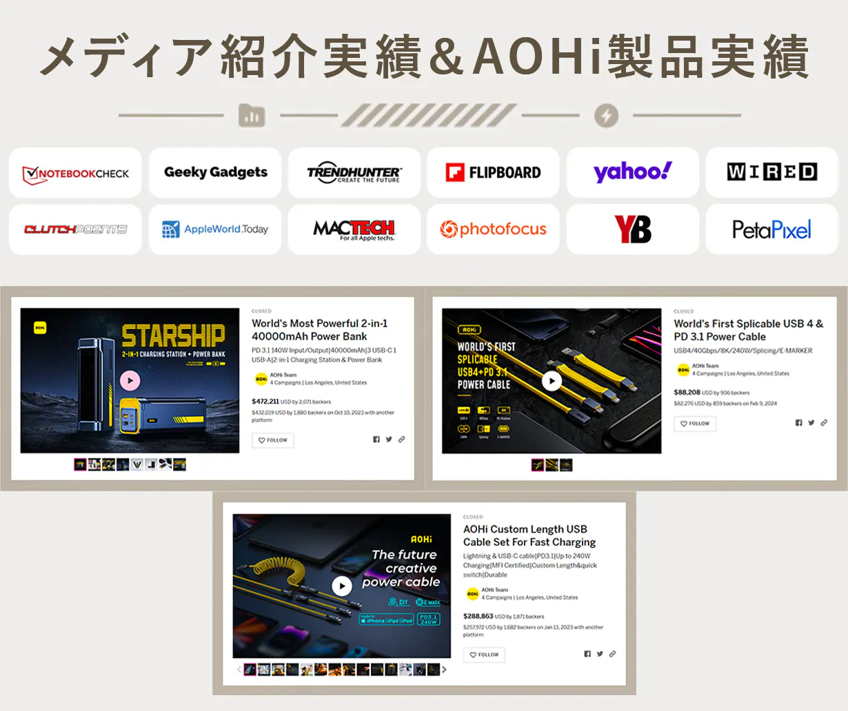 AOHiは、2004年に設立された革新的な充電とストレージの企業です。20年間にわたり、充電とストレージ機器の生産および開発の経験を持ち、デザイン、研究開発、生産、テスト、販売のフルリンク製品生産システムを完備しています。会社は「充電する、探求する」というブランドコンセプトを堅持しています。私たちは常に、技術が生活をより良くするという信念を持ち、高性能充電機器を探求しています。複数の最先端技術を導入し、消費者に究極の充電体験を提供しています。これにより、科学技術と生活をより密接に結び付け、技術をより面白くし、魅力的な商品を創造し続けます。