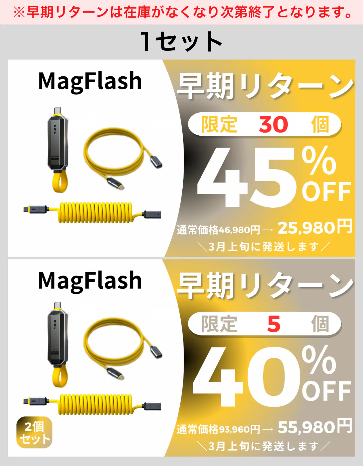 MagFlashはストレージと充電ケーブルを両立させる革新的な2-in-1ケーブルセットです!