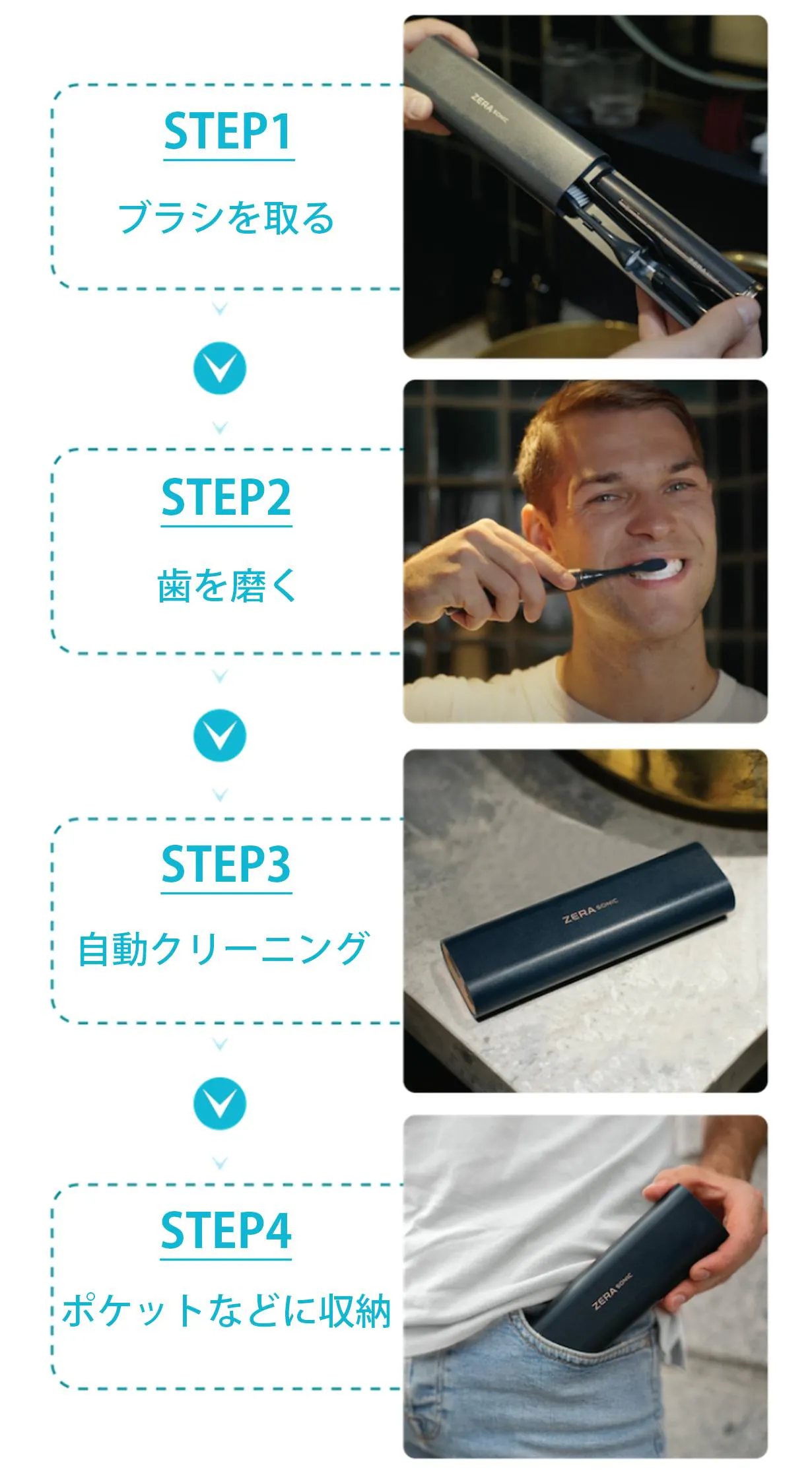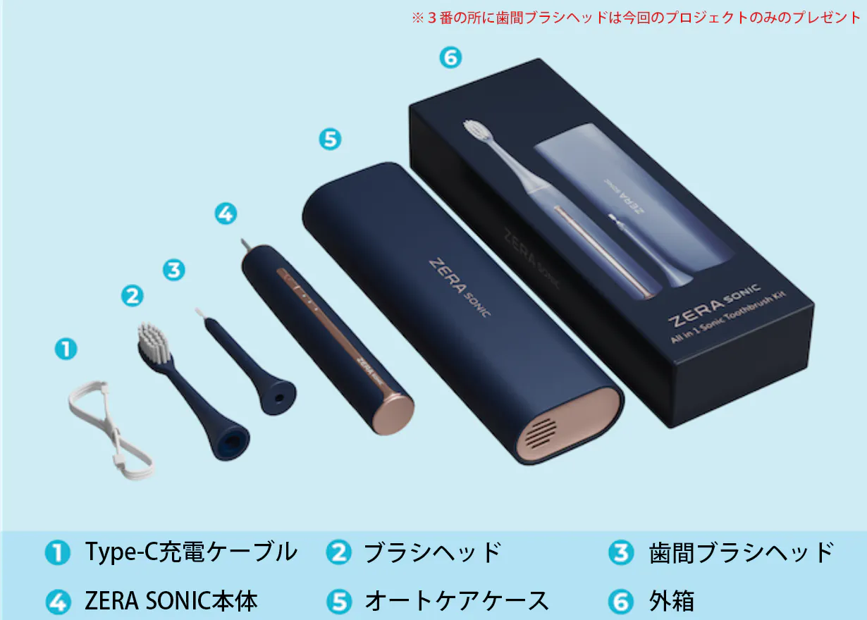 今回紹介のZERA SONICは、歯間ブラシと歯ブラシの音波ブラシセット。自動充電やオートケアケースなど目新い機能が満載でとても便利だと感じ今回プロジェクト起案に至りました。