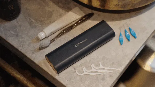 ZERA SONICには、毎分50,000回振動させる音波発生装置が搭載されており、歯についた食べ物や飲み物の残留物を優しくこすり落とします。