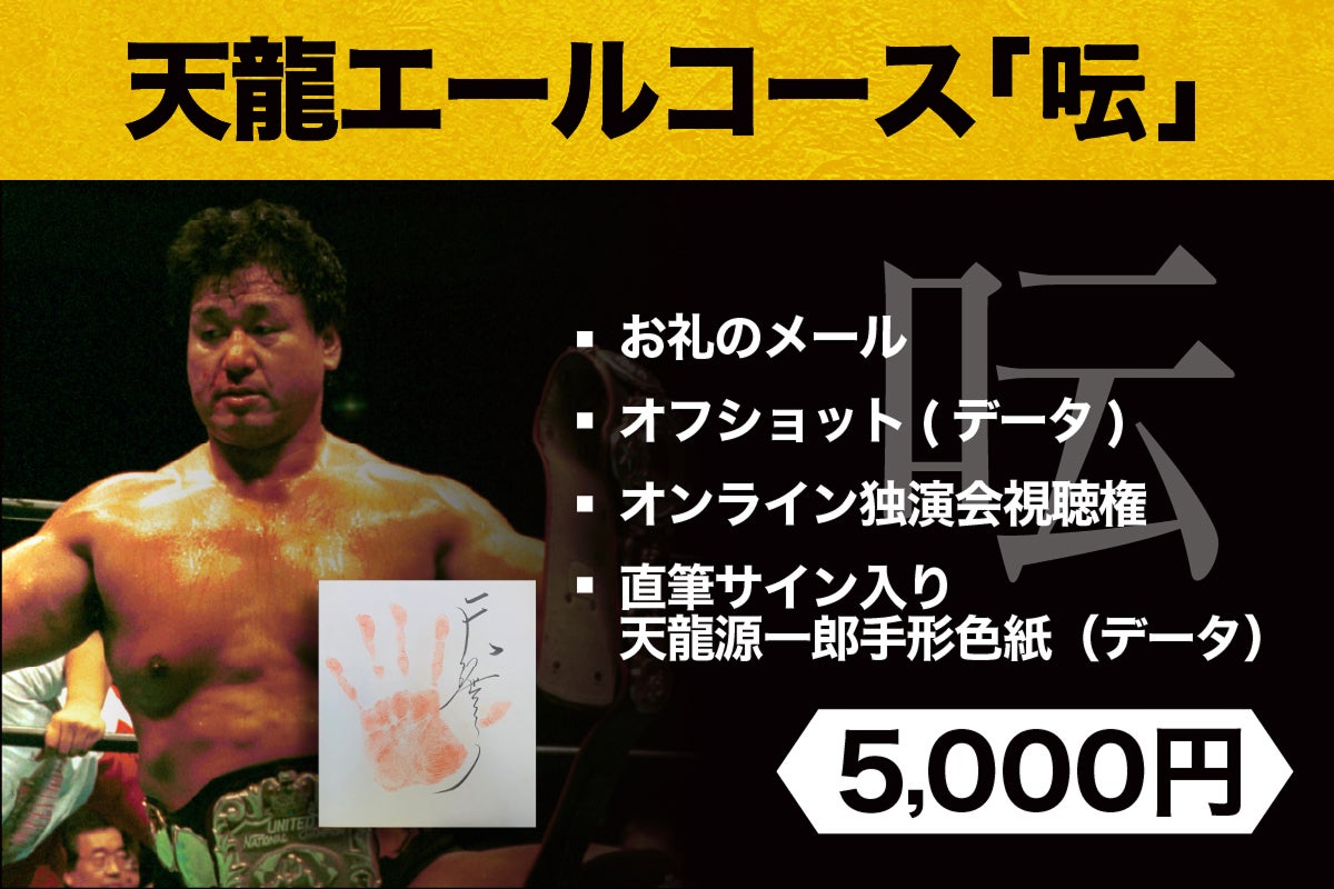 天龍エールコース「呍」 1.お礼メール / 2.オフショット(データ) / 3.オンライン独演会視聴権 / 4.直筆サイン入り!天龍源一郎手形色紙(データ) |