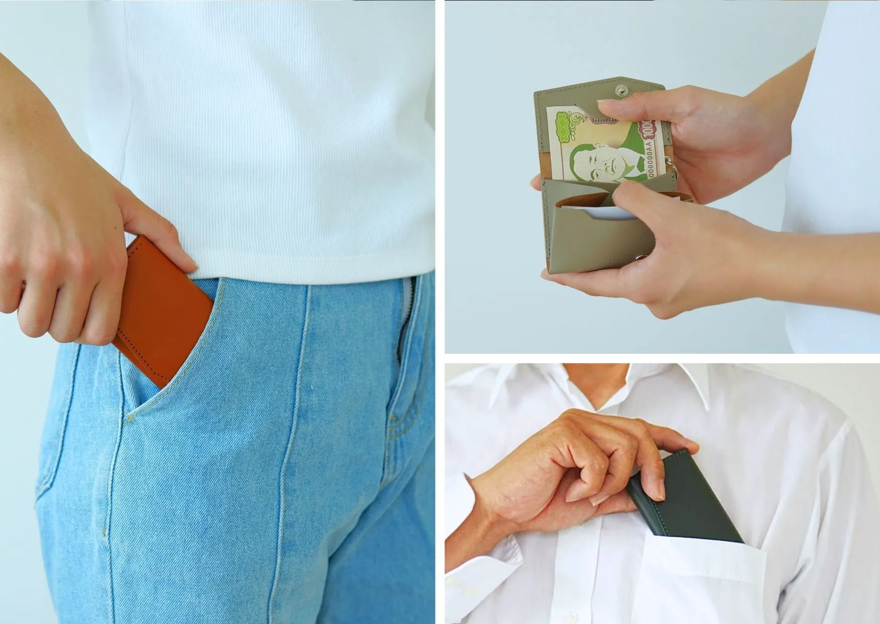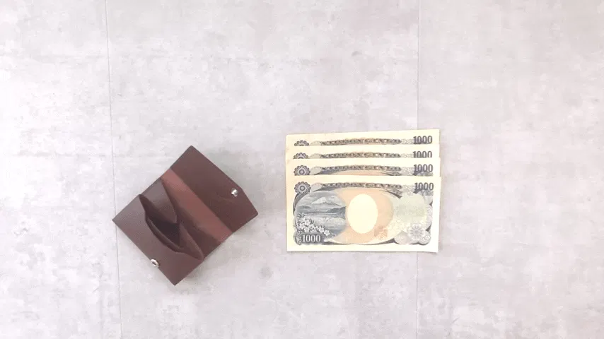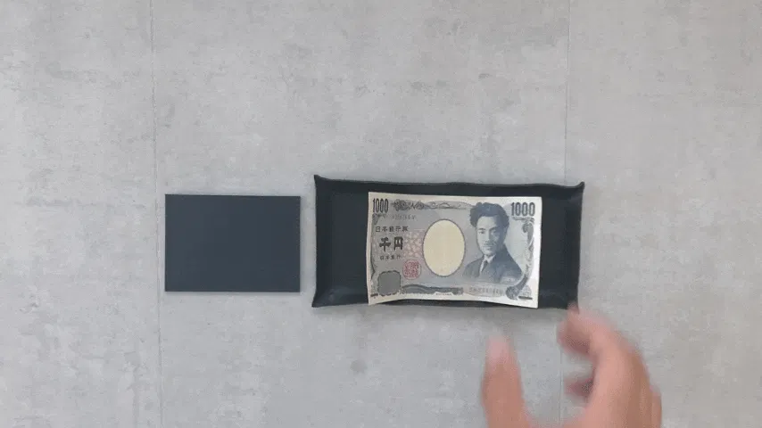 いくらコンパクトな財布でもこの映像のように、お札を一枚ずつ三つ折りにしないと収納できない財布ならわずらわしくてスムーズには支払いができません。