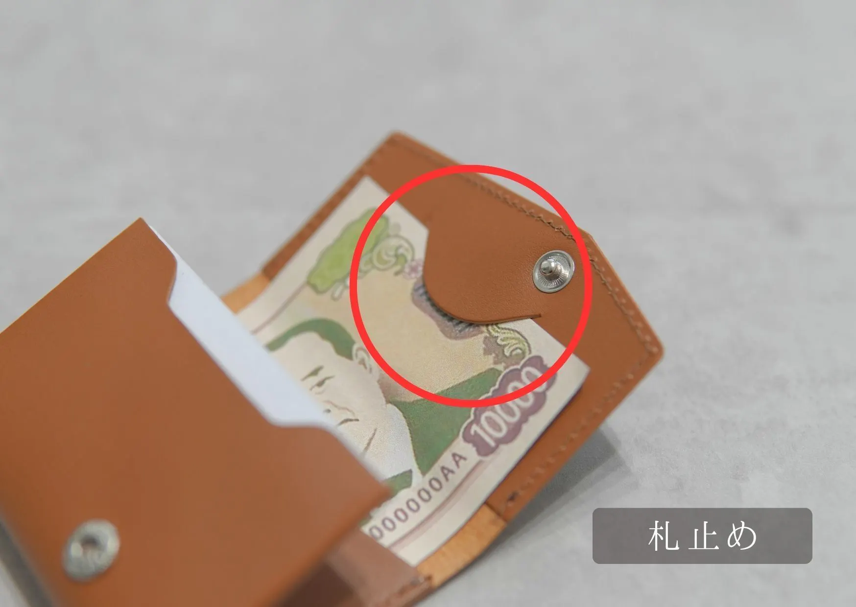 お札の枚数が多いときにお札をとめていただける札止めを設置。ここで止めればバタつくこともありません。(札止めは使用しても使用しなくても大丈夫です)