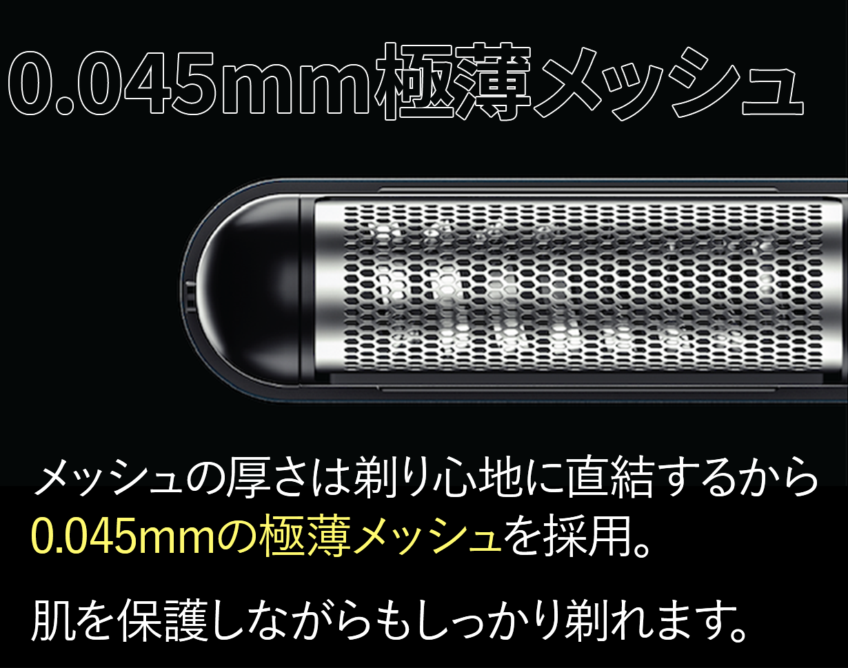 メッシュが薄いほどより深くまでヒゲが剃れるので、ZERA S SHAVERはメッシュの厚みを極限まで薄くしました。