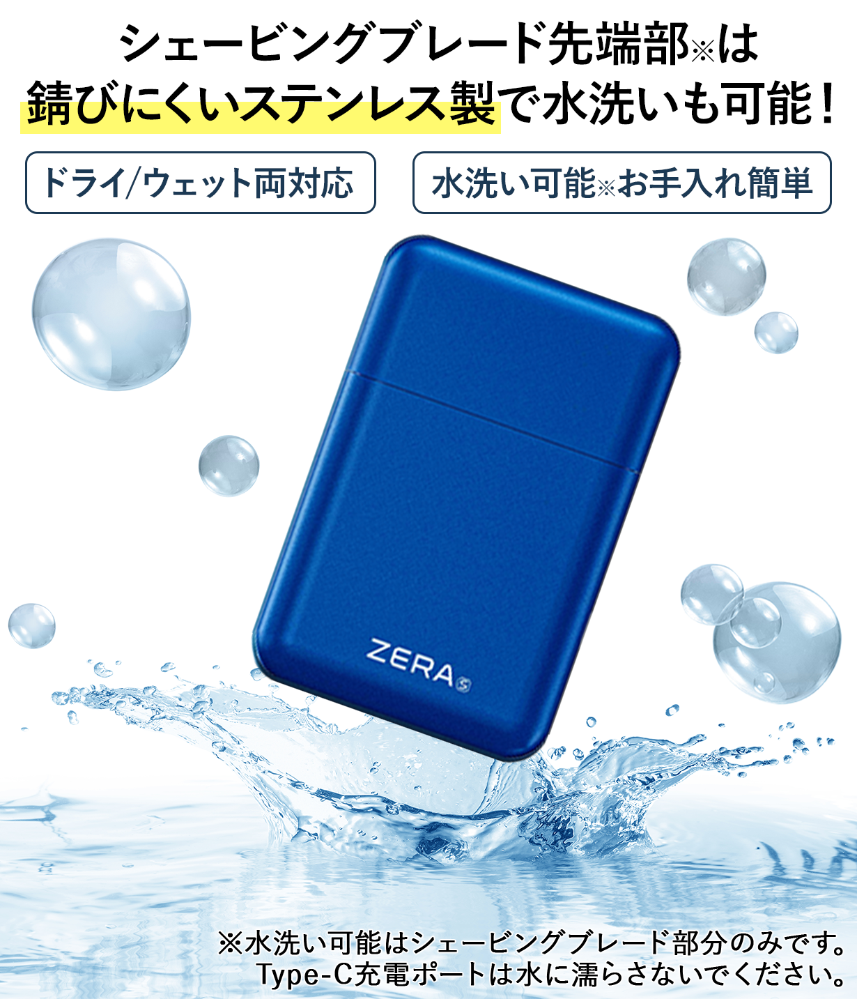 ZERA S SHAVERは耐水性が高く、ブレード部分は直接水洗い※も可能!