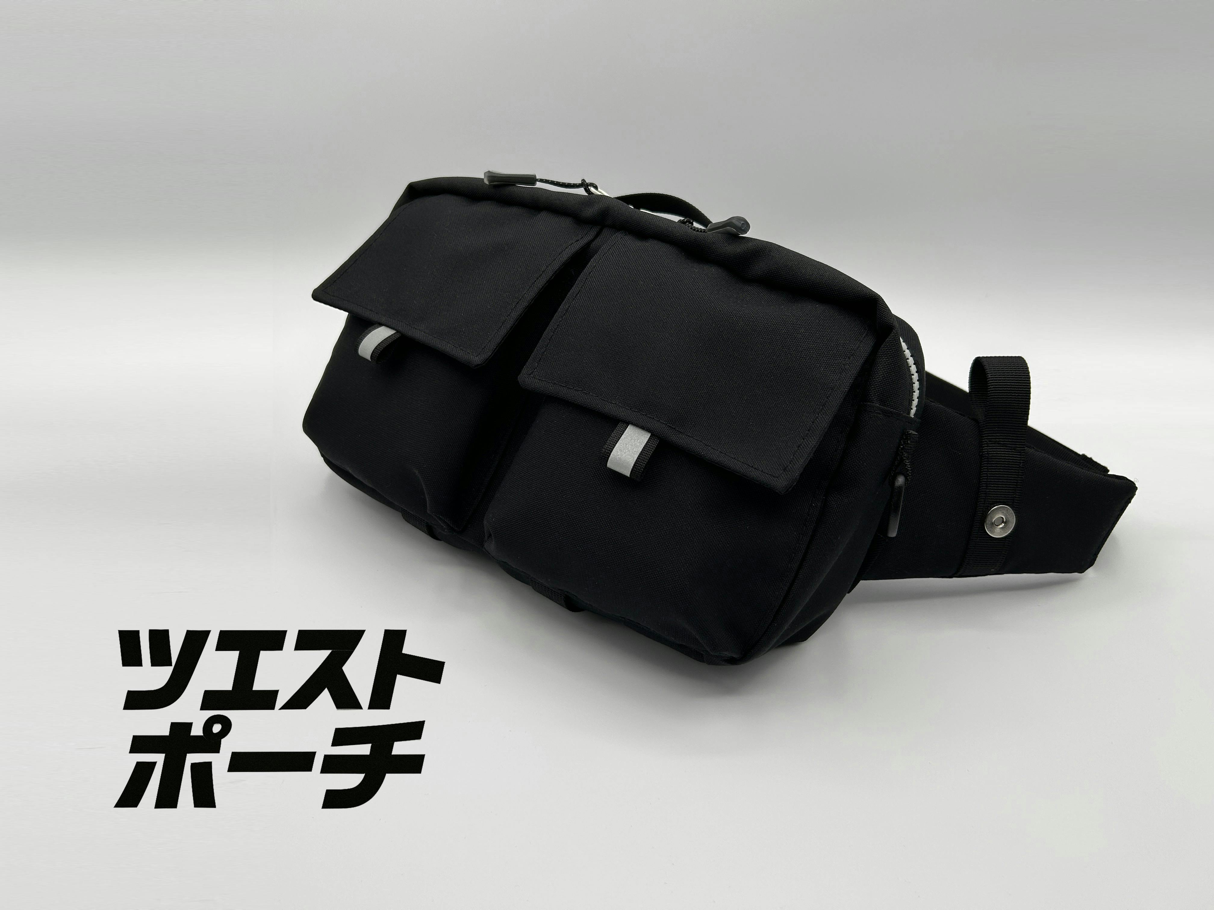 一見、普通のウエストポーチに見えますが、蓄光素材や反射素材を使い、暗闇で光ります。