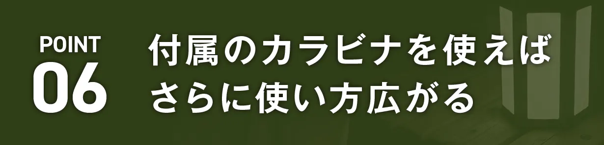 そんな思いから、十分な強度をもたせたタグを本体に縫い付け、そこに三角形のカラビナを通せるデザインにしました。