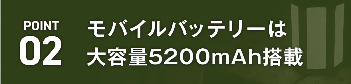 モバイルバッテリーの容量は必要十分な5200mAh。