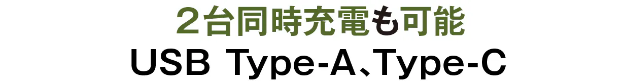Type-C端子とType-A端子を搭載しているので2台のガジェットを同時に充電も可能。