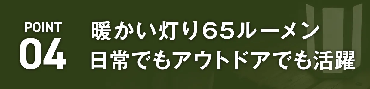 ライトの明るさは65ルーメン、ライトの色は優しい暖色系。