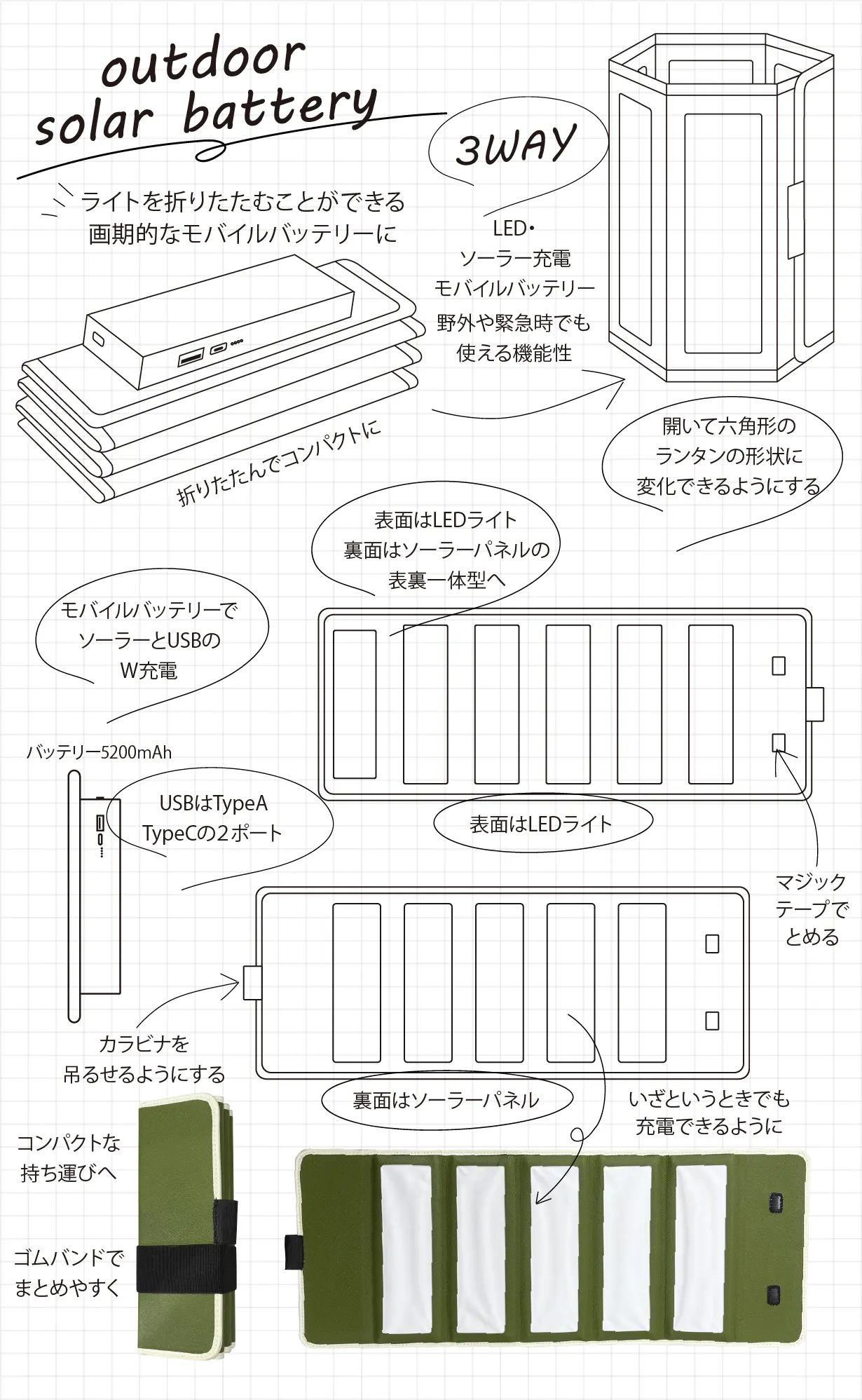ソーラー充電式のモバイルバッテリーを開発する過程でいつしかランタン機能がメインに…。