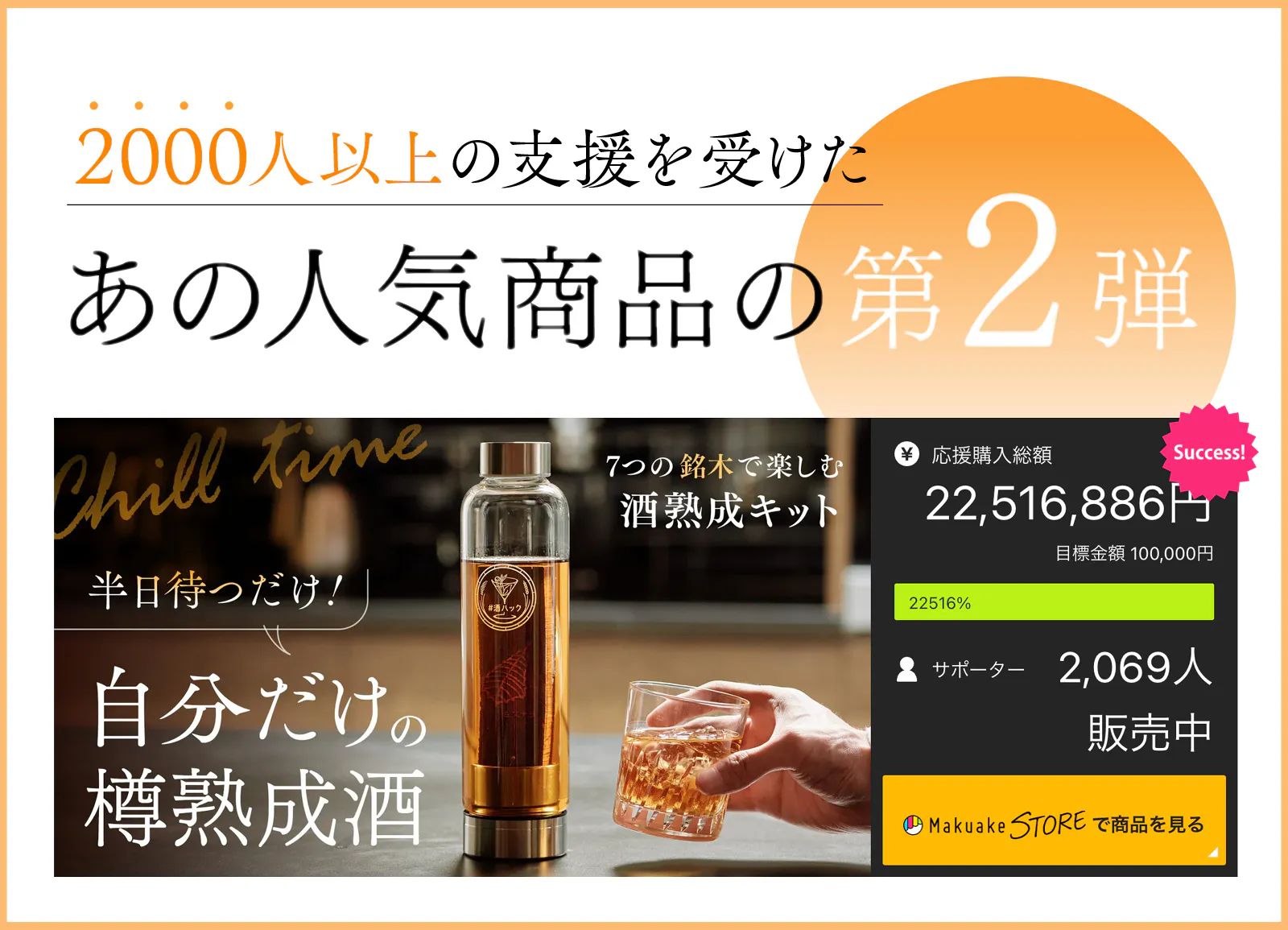 専用の木材をセットして待つだけで、いつものお酒に、樽熟成したようなまろやかさと芳醇な香りをプラスする人気のキットの第2弾が登場しました。