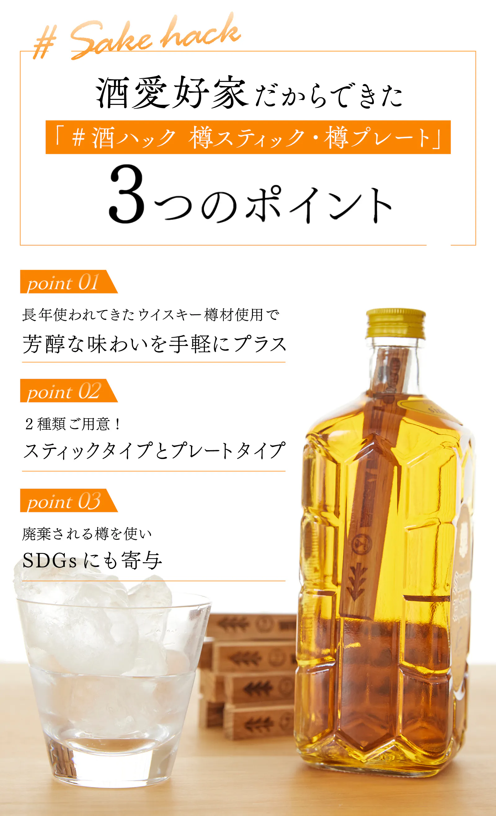 今回登場の「#酒ハック 樽スティック」は、そんなご意見も参考に、より手軽にいつものお酒をアップグレードできる、「ホンモノの樽」を使った熟成キットになりました!