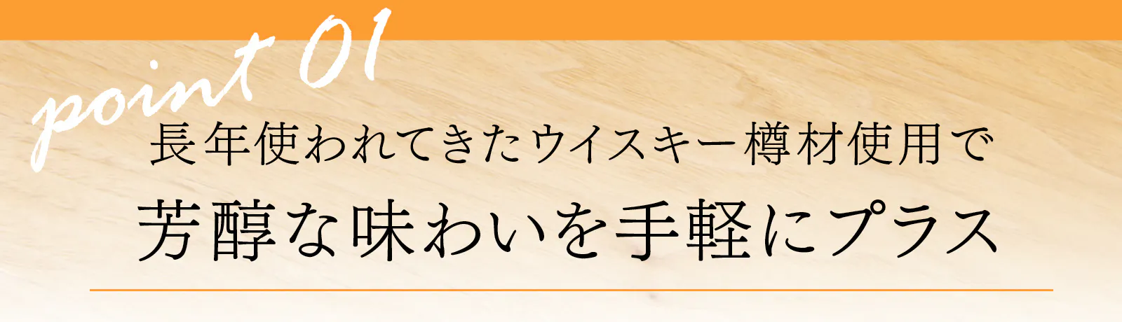 今回は、もっともっと美味しくするために老舗ウイスキー蒸留所と交渉し長年ウイスキー樽として使われたホンモノの樽材を使用しました!