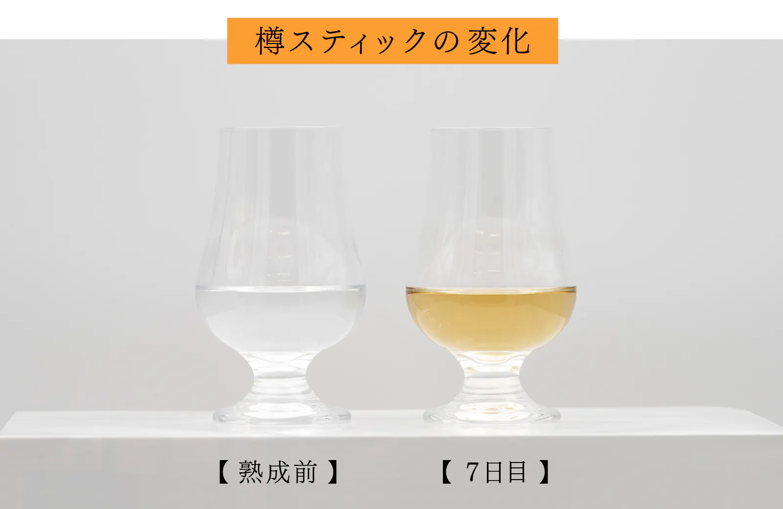 A:アルコール度数20度以上のお酒がおすすめです。ウイスキーでも焼酎でも泡盛でも比較的低価格帯のお酒の方が変化を実感しやすいです。まずは熟成の変化の感覚を掴んでみてください。いきなり高価でバランスの取れた味わいのお酒と組み合わせるのは推奨していません。