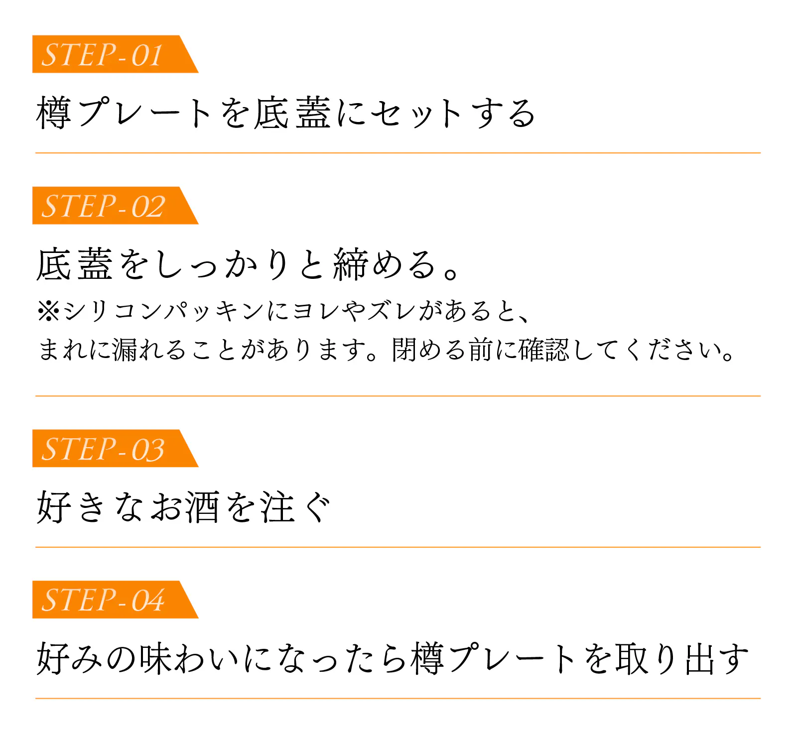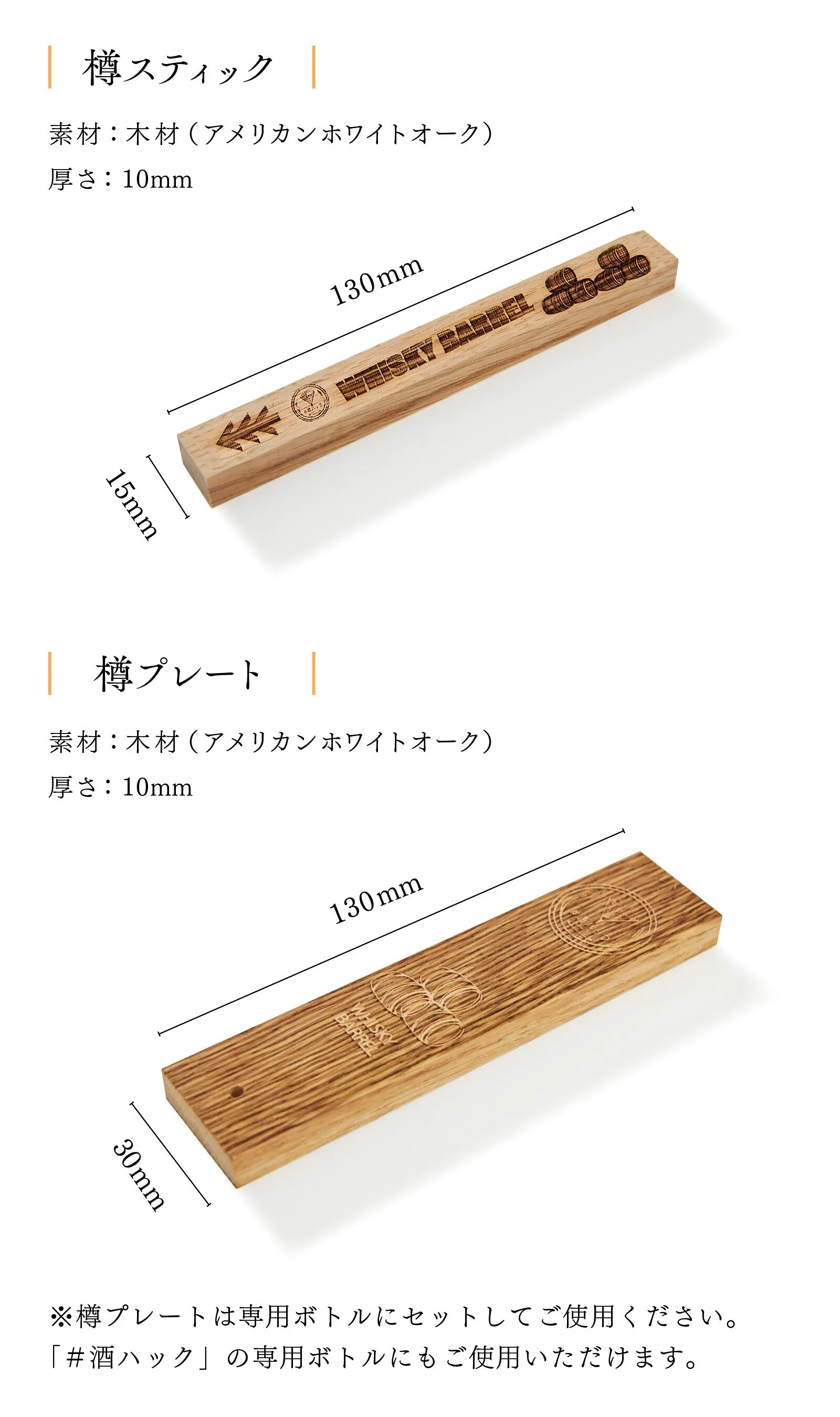 ※適度な大きさのボトルに樽スティック・樽プレートを入れ、好みのお酒を注いでも使えます。