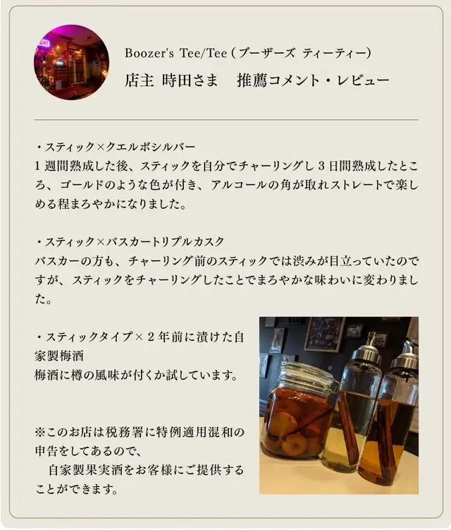 実際にお酒に漬けてみると、ホンモノの樽材を使うことで確実にワンランク、ツーランク味わいがアップグレートすると実感できました。