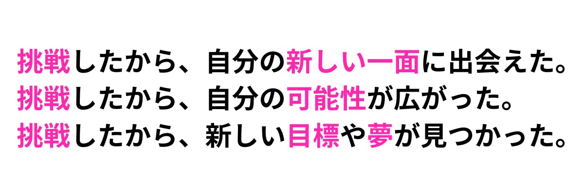 お互いの過去を深掘っていくと、自分たちを変えてくれたのはそれぞれの「挑戦」が鍵となっていることに気が付きました。