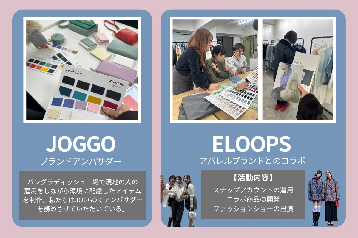 立ち上げメンバーの3人は、革製品を扱うオーダーメイドブランドJOGGOのアンバサダーを約1年間務める。また、アパレルブランドELOOPSとコラボし、Instagramのスナップアカウントの運用やファッションショーのスタイリング、ステージプロデュースも行う。