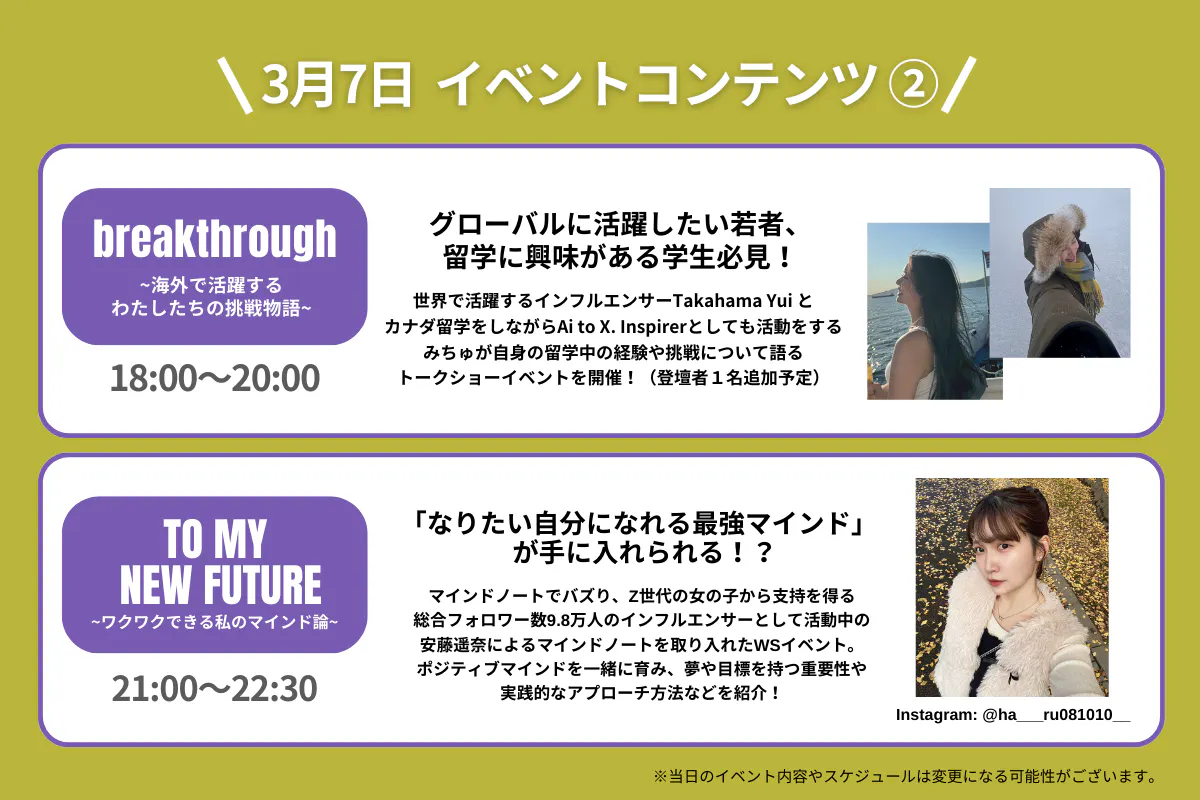 3月7日にオンラインのコンテンツも用意することで、当日現地での参加が難しい若者にもイベントに参加できる機会を作ります。