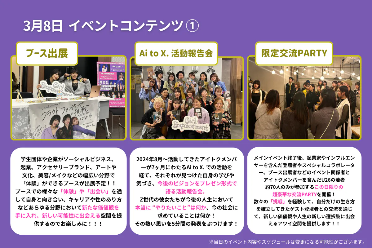 3月8日のイベントは自身で体感し、学びや気づきを得られる体験・実践型コンテンツを多数用意しています。