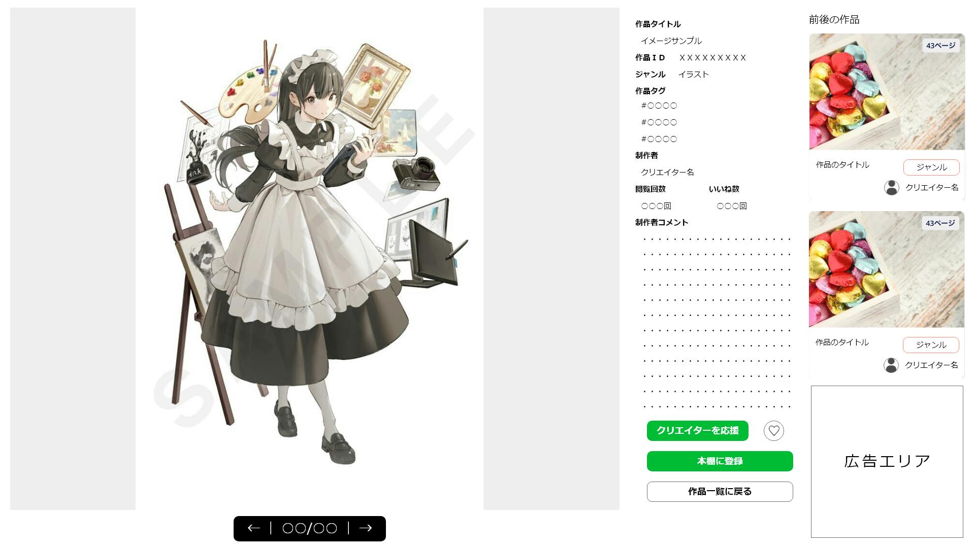 この構造を、イラストやマンガを扱うプラットフォームで採用してみては?と考えました。
