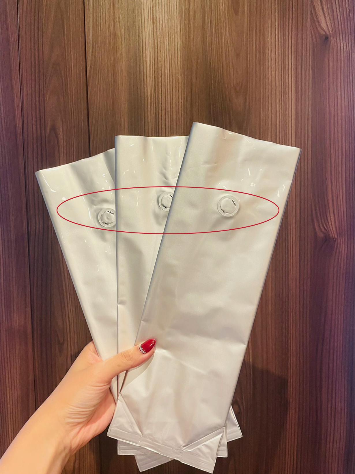 ゴリオ社のバルブにより、ガスが発生しても焙煎直後に空気に触れることなく詰めることができます。
