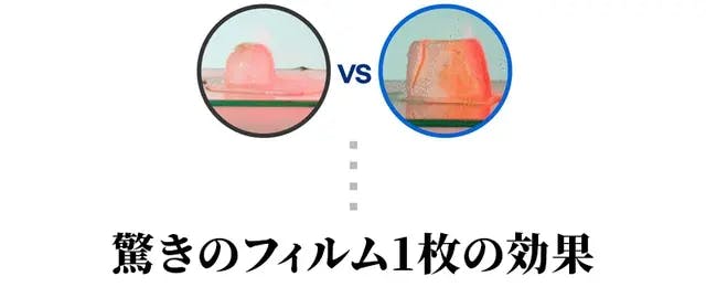 ※自社テスト)環境:2022年10月。停車中の自動車、30分間放置後フロントガラスの半分にフィルムを貼りクーラーをつけ10分間放置。外から温度測定