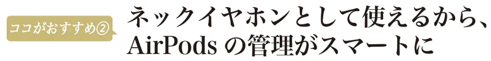 首元でAirPodsを管理しながら充電が可能に。つけて外してを繰り返しても、耳から外すだけだから肌身離さずAirPodsを利用できます。
