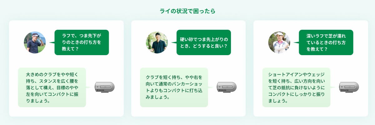 「Birdie Talk(バーディ・トーク)」は、ゴルフのラウンド中にAIがアドバイスを提供する対話型デバイスです。
