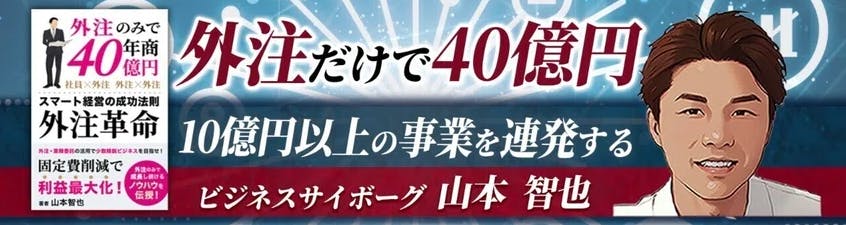 私は、「通称ビジネスサイボーグ」として外注活用の力をフルに発揮し、年間40億円を実現してきました。これは私自身が特別というより、「外注組織化」のポテンシャルが誰にでも開かれている証明だと思っています。