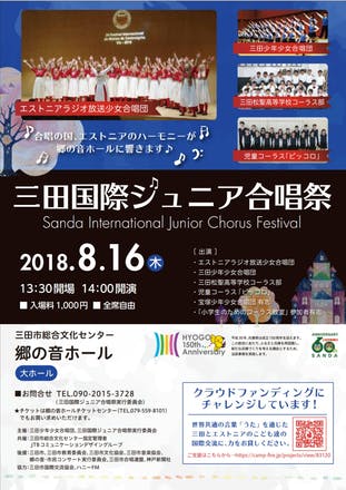 兵庫県三田(さんだ)市は、兵庫県の南東部に位置し、神戸市の市街地より六甲山系を越えた風光明媚な場所。 豊かな環境と穏やかな気候に恵まれたこの地に育つ子ども達が、8,000キロ離れたエストニアの子供達に会いたい!一緒に歌をうたいたい!と夢を燃やして取り組んでいます。私達「 三田国際ジュニア合唱祭実行委員会」は、そんな子ども達を応援したいと、三田市を拠点に活動する三田少年少女合唱団が母体となって2014年に立ち上がりました。実行委員のほとんどが、三田市内・近郊で合唱団に所属する子ども達の「お母さん」。 子ども達がうたを通じた国際交流を体験して大きく成長する事を、母の気持ちで応援したいと願っています。このプロジェクトでは合唱大国エストニアからやってくる子ども達との交流の実現を目指します。子ども達の宝になる経験を、 是非とも応援お願いします!