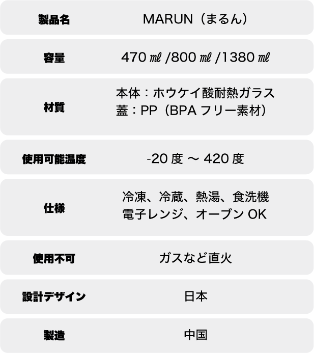 MARUN(まるん)は高ホウケイ酸耐熱ガラスを採用し、驚異的な耐熱性・耐久性を実現しました。