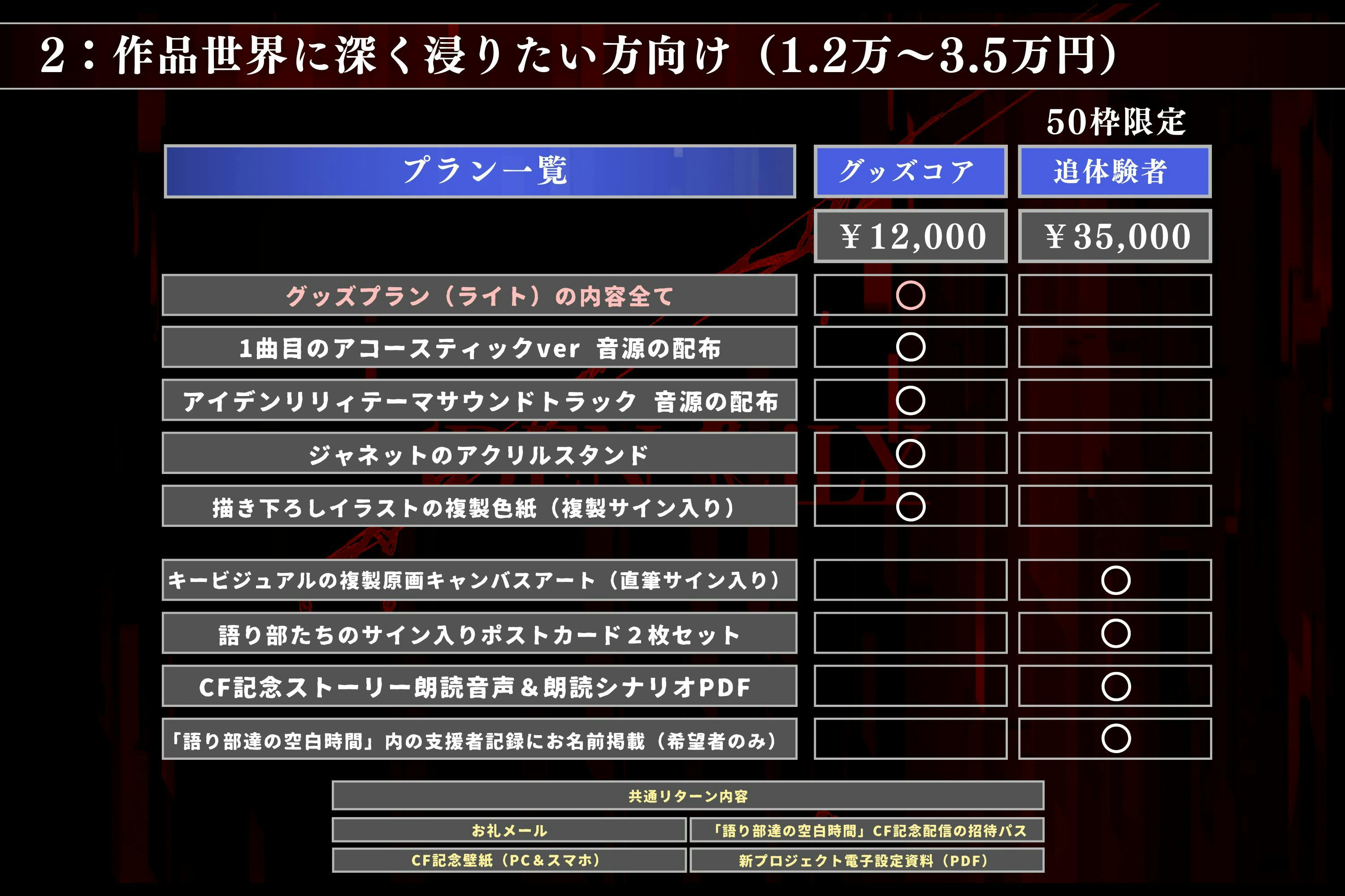 この度、皆様のご要望により超高額プラン「特別後援者プラン」の第二弾を追加することが決定いたしました!本当にありがとうございます!