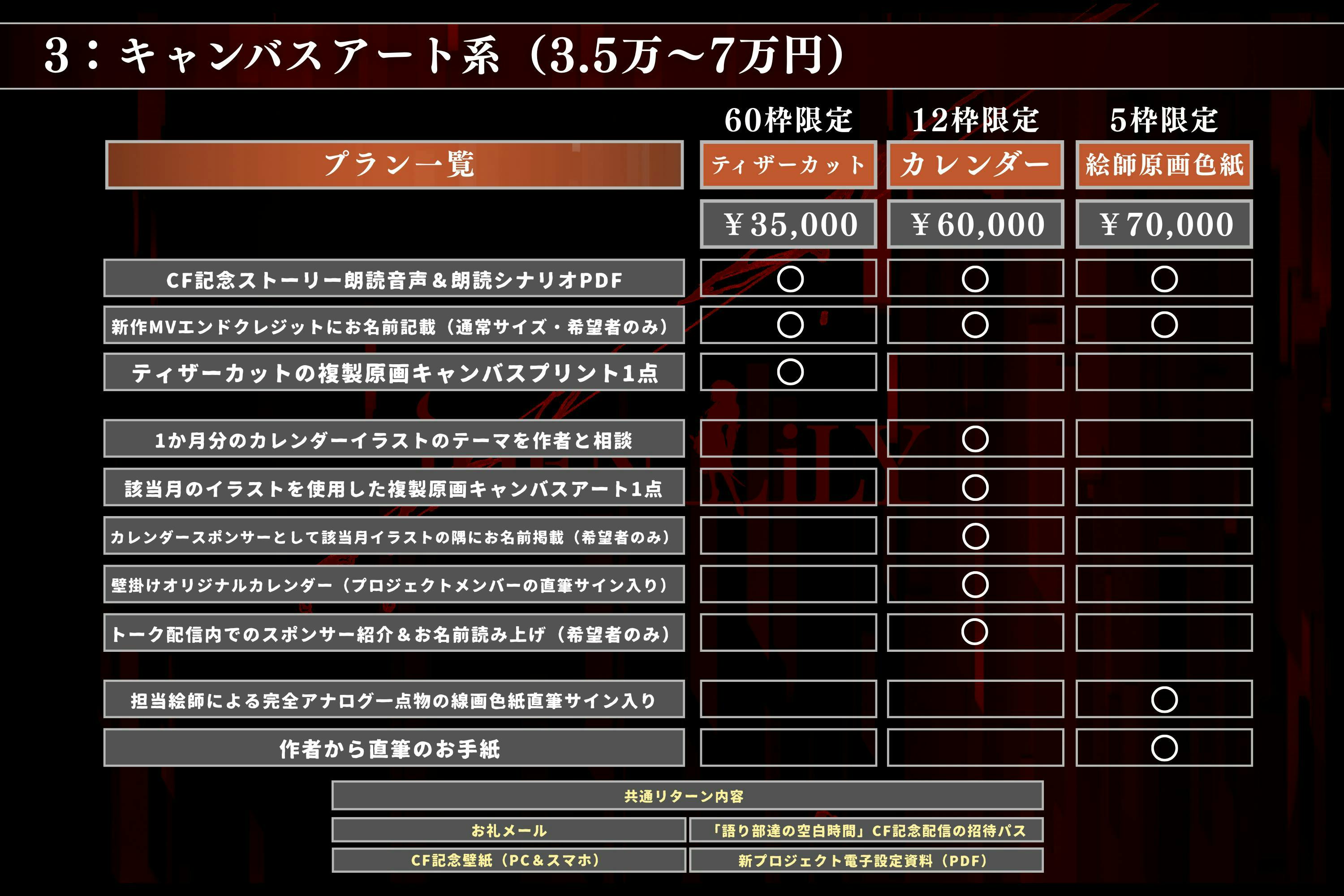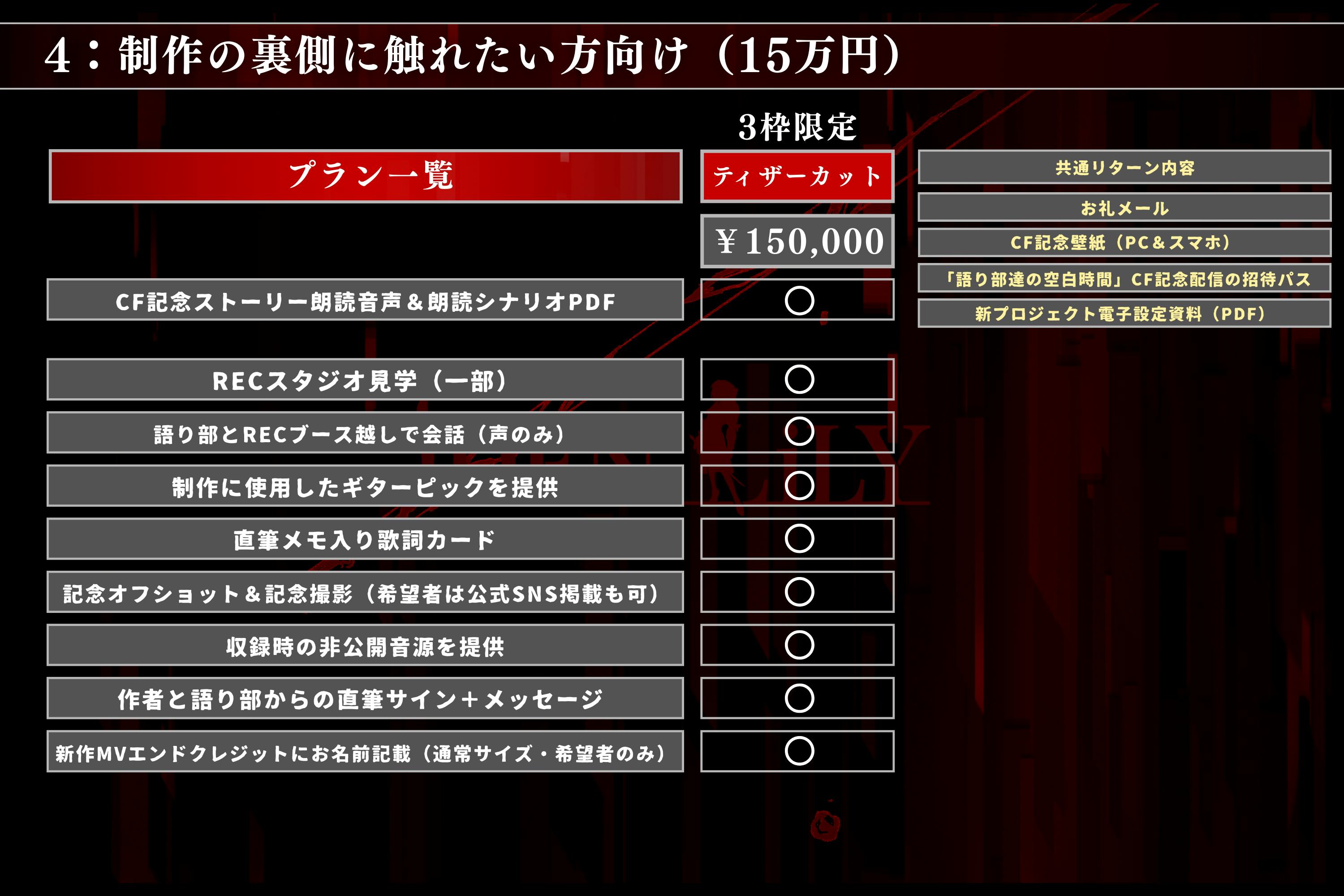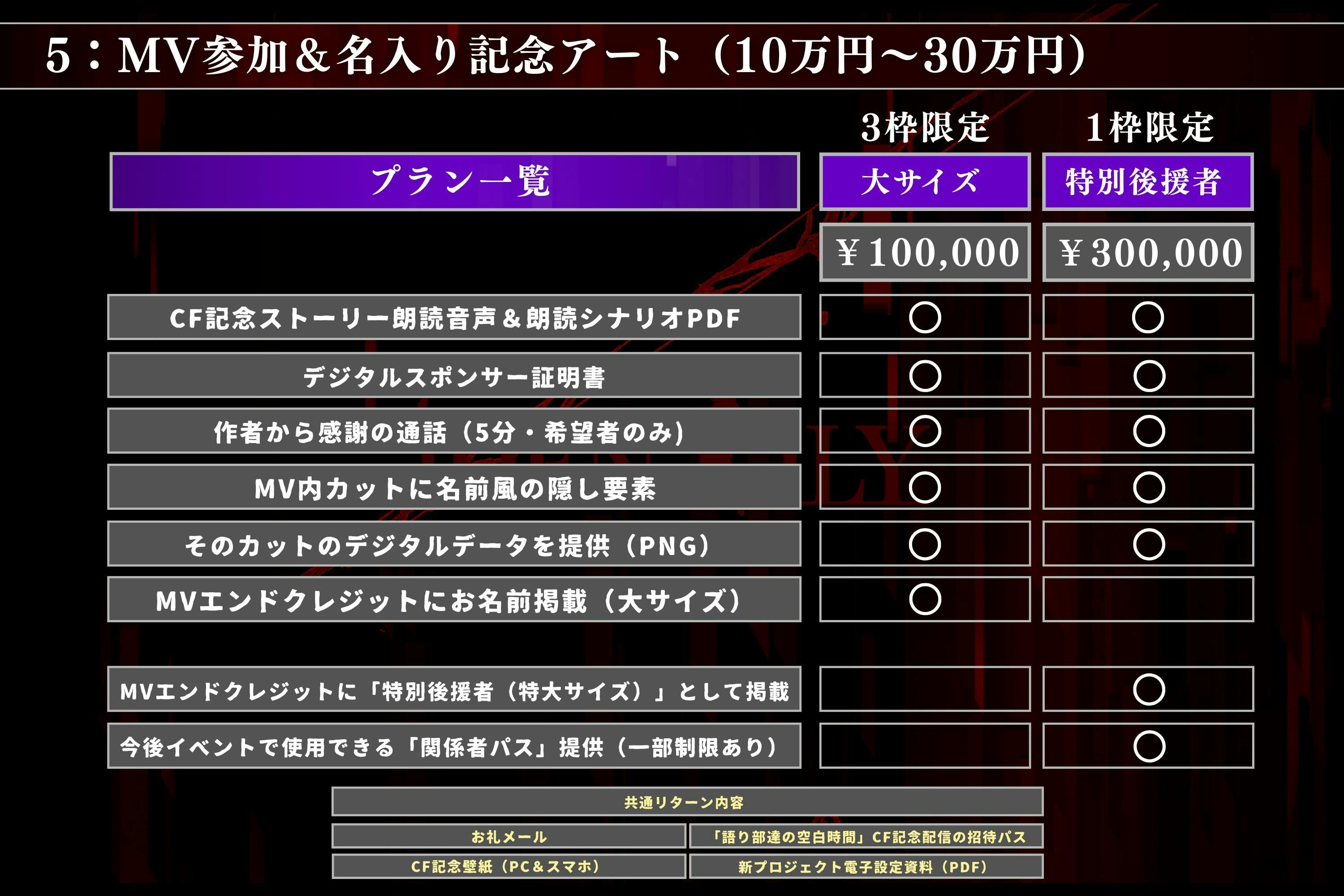 ※枠数は2枠となります※以下のリターン内容については、第2章のMV作品内にて適用となります。
