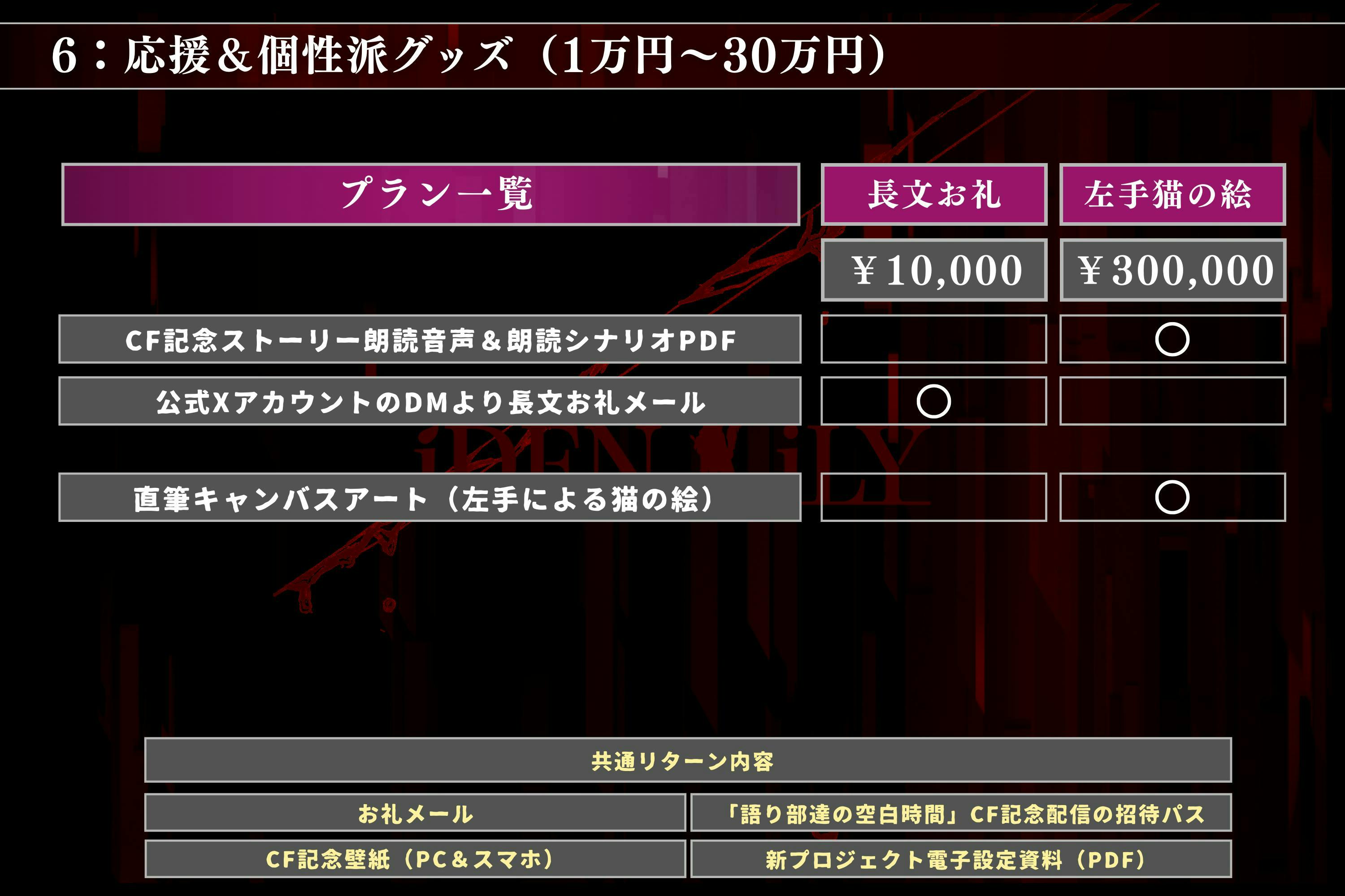 ◆【10万円/限定3枠】あなたの名を作品内の隠し要素として残す支援プラン