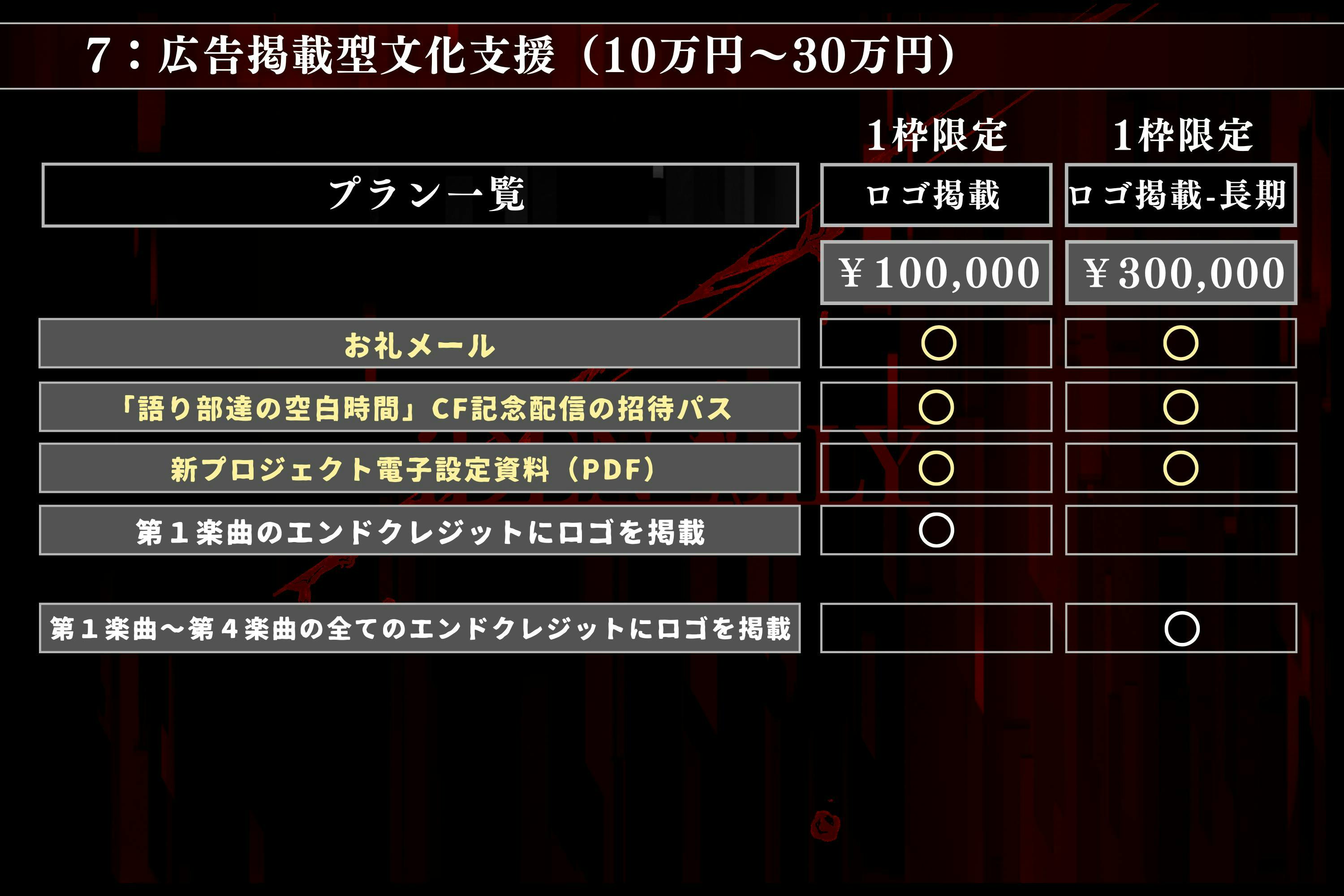 【30万円/限定1枠】ロゴ掲載プラン・第1楽曲~第4楽曲の全てのエンドクレジットにロゴを掲載
