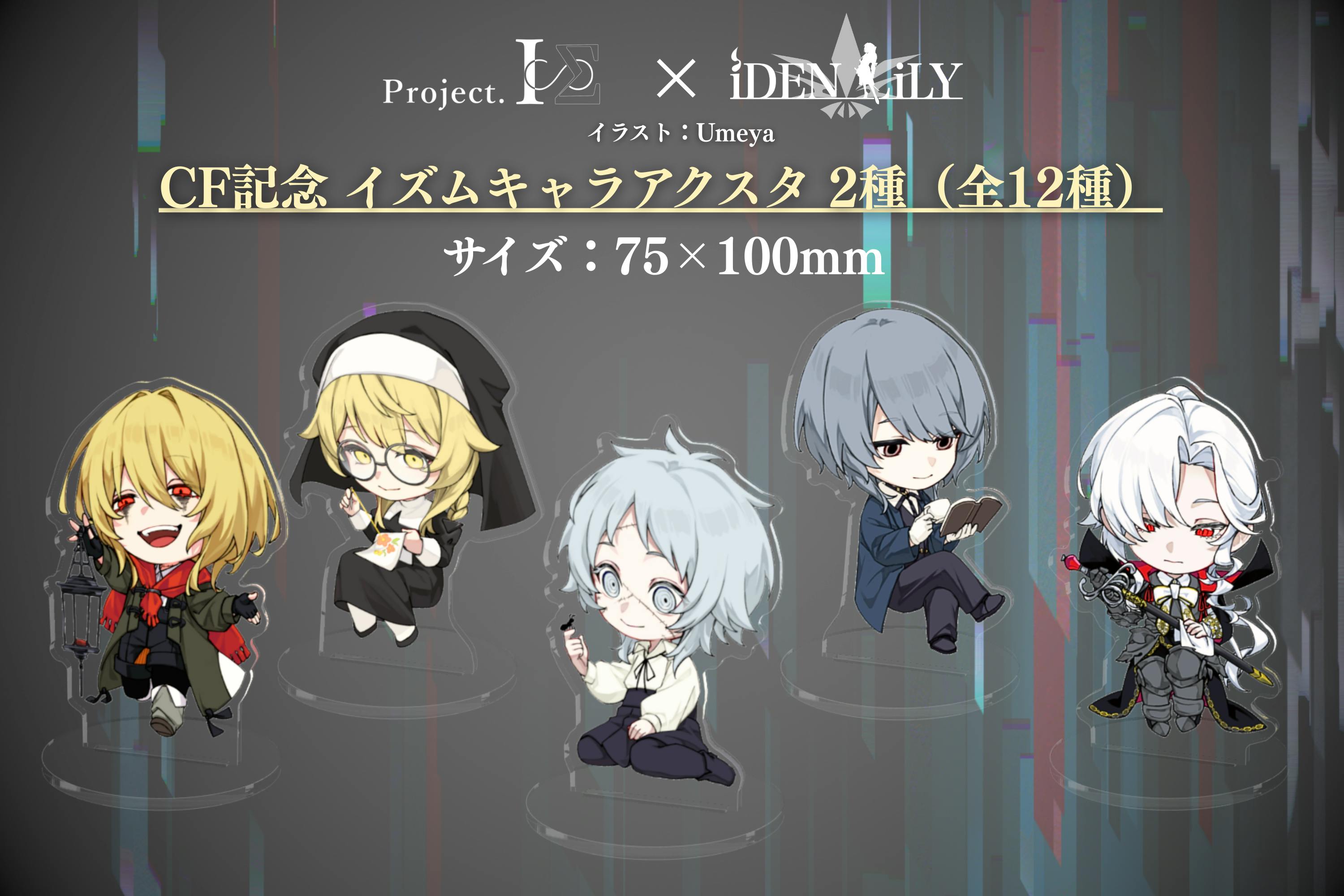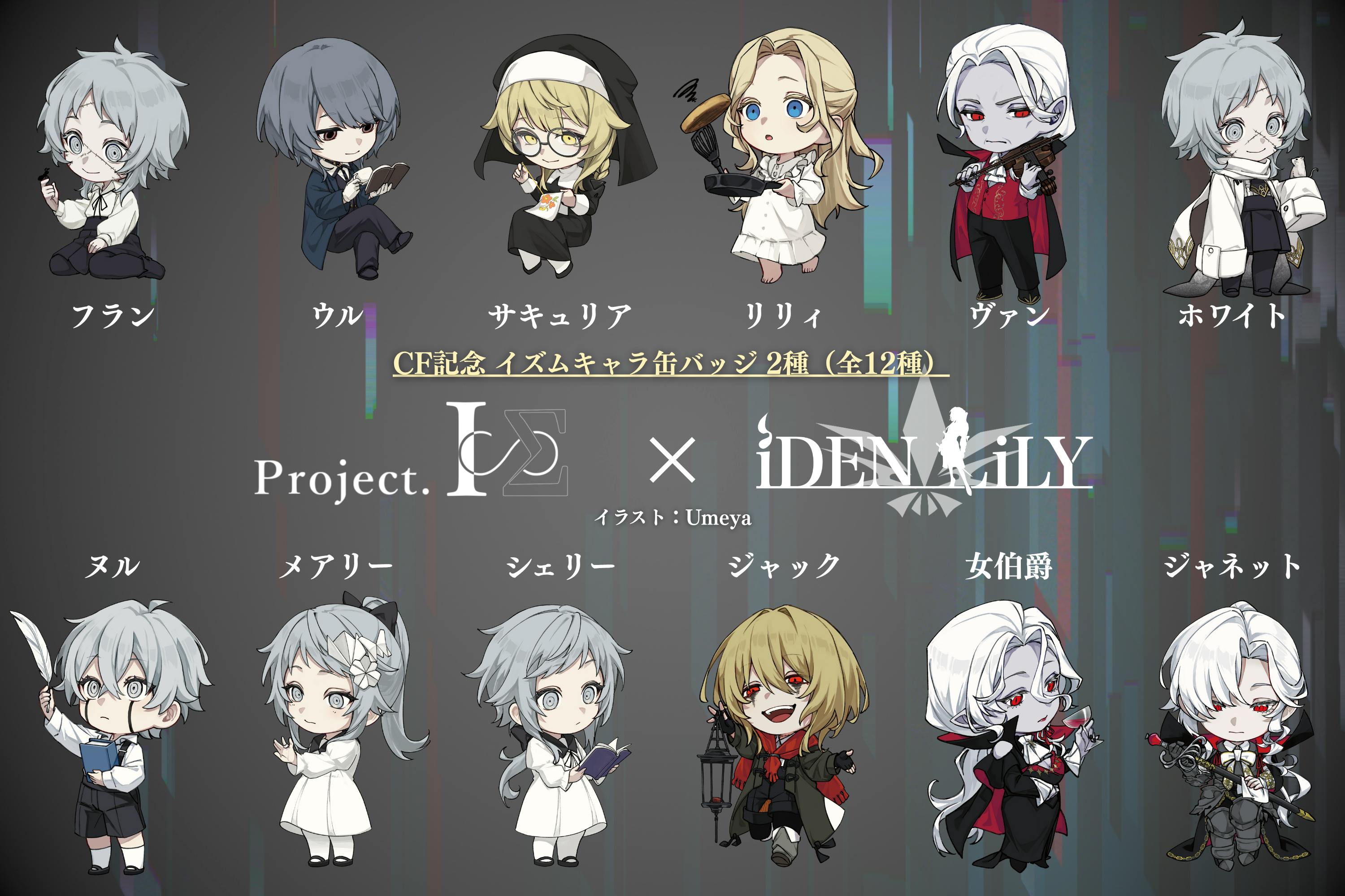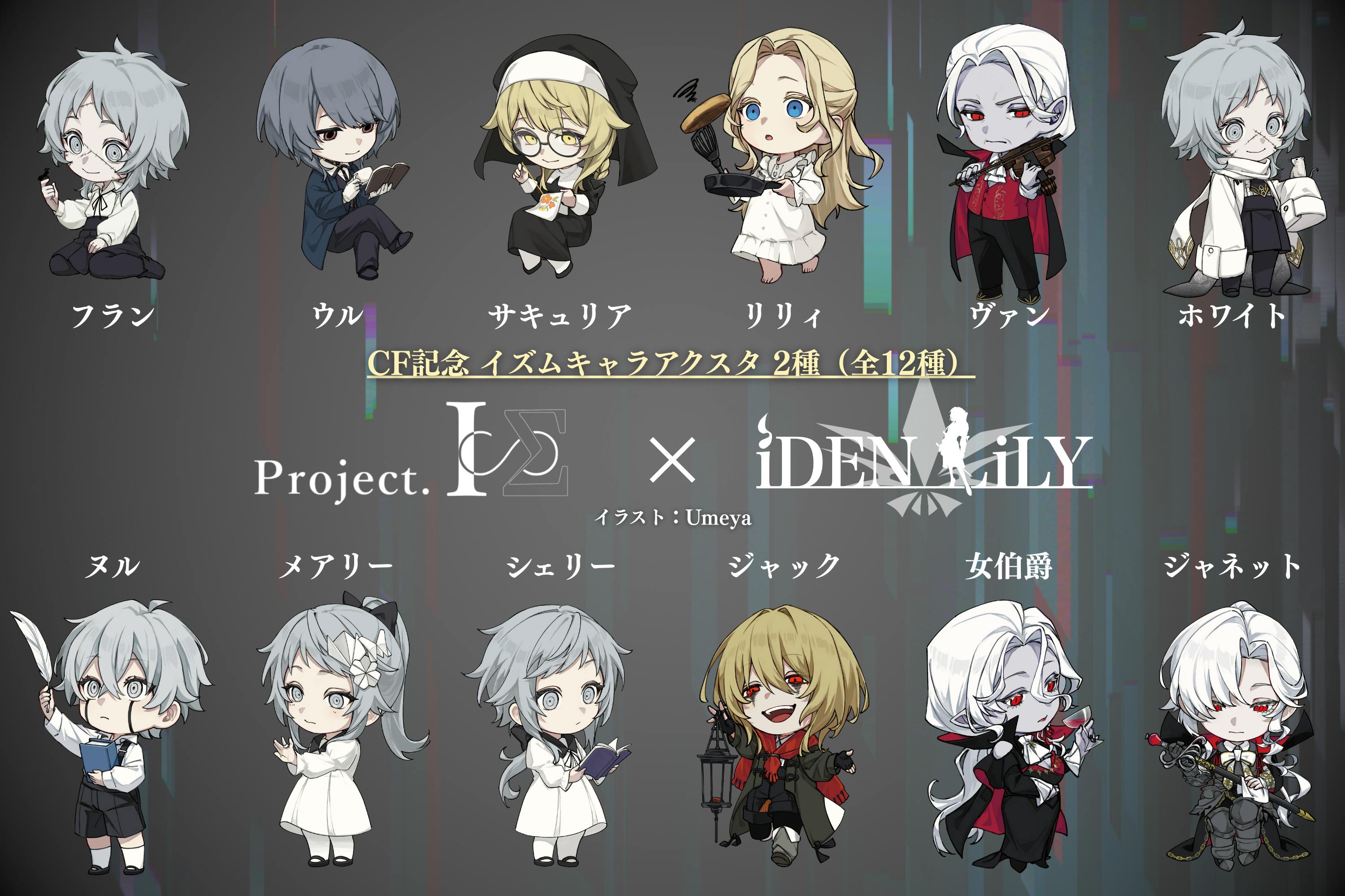 ボカロPふぁるすてぃが手がける「Project.ISΣ ― イズムシリーズ」のキャラクター11種+本プロジェクトの主人公「ジャネット」の全12種から2点お選びいただけます。