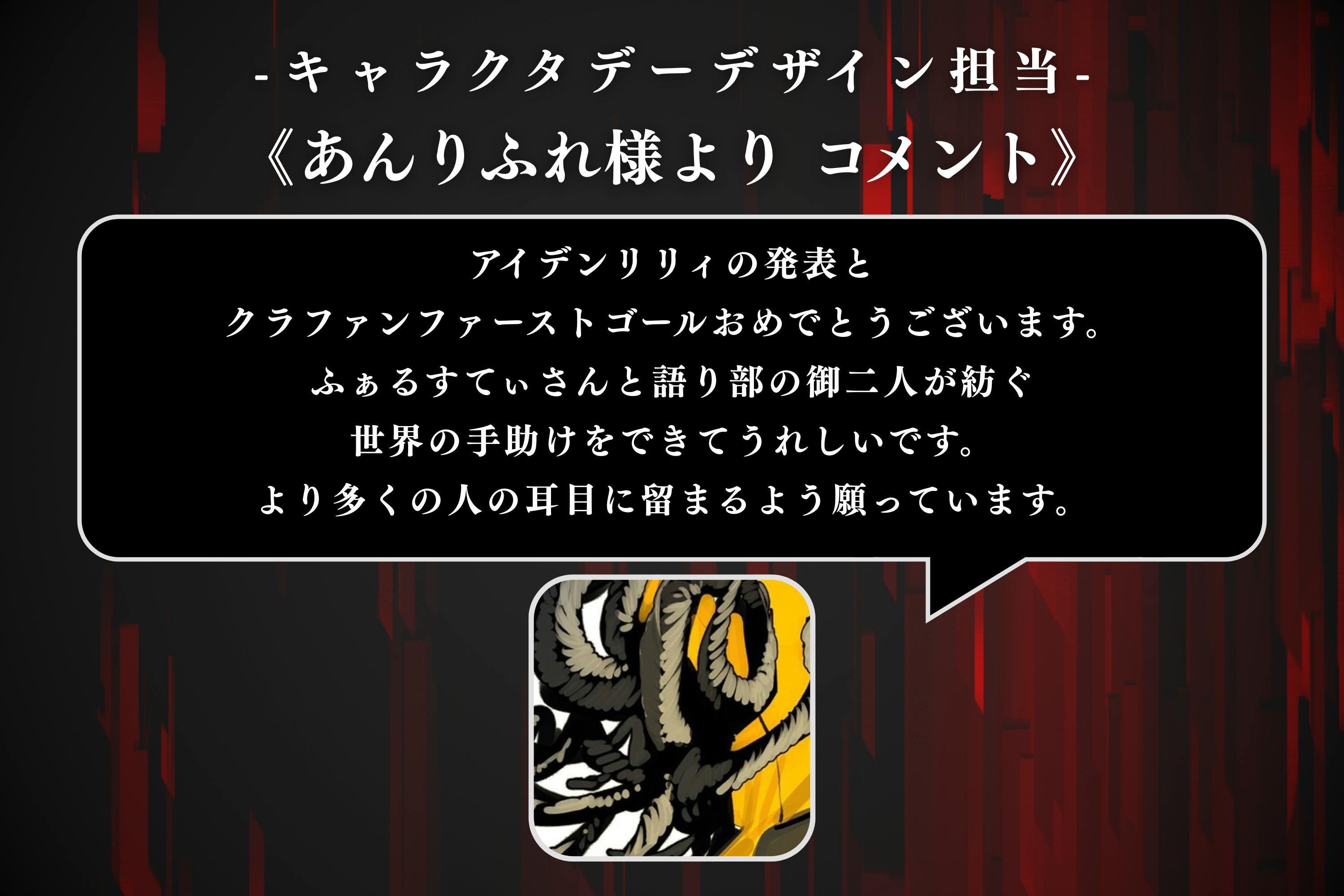 2025/12/19 20:30支援者の皆さまへ本日20:00、新曲 「ウルフェンオウス」 を公開しました。この楽曲は、クラウドファンディングでいただいた皆さまのご支援がなければ、この形での公開は実現しませんでした。改めて、本当にありがとうございます。そして今週 12月21日(土) には、関連する配信を2本予定しています。■ 12/21(日)20:00〜21:00「語り部達の空白時間 ──聖典管理図書室にて」初回配信アイデンリリィの物語の外側を、語り部2人の視点で静かに語るトーク配信です。作業のお供など、気軽に聴いてもらえたら嬉しいです。■同日 21:30〜(クラファンリターン企画)「語り部達の空白時間 ──聖典管理図書室にて」CF支援者限定枠こちらでは、「ウルフェンオウス」公開後の振り返りや、制作・判断の裏側について、より踏み込んだ話をする予定です。※ 支援者限定配信の視聴方法については、別途CAMPFIRE内メッセージにてご案内します。楽曲、配信ともに、このプロジェクトを一緒に進めてくださっている皆さまにまず届けられることを大切にしています。引き続き、アイデンリリィをよろしくお願いします。 もっと見る